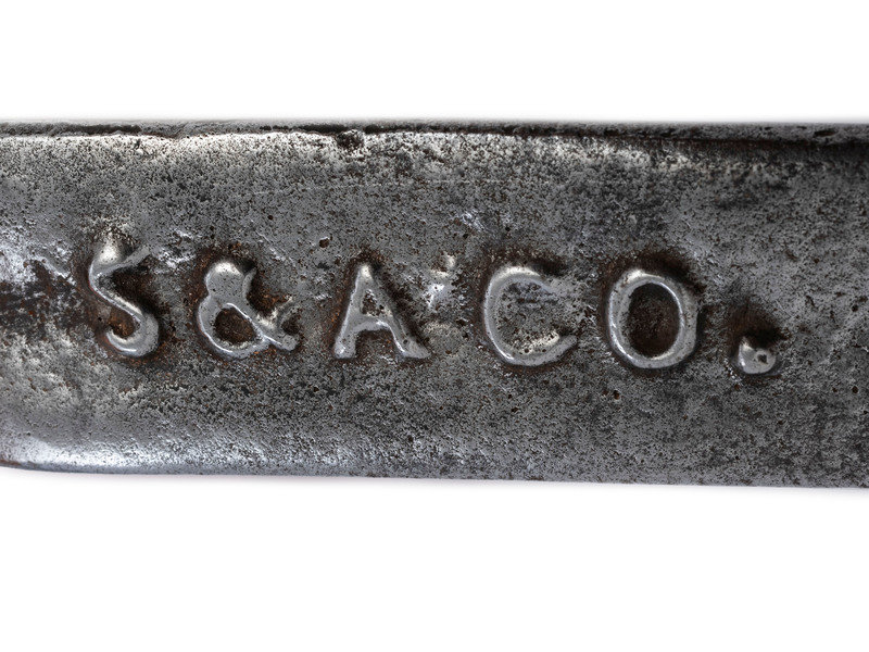 stamped SMITH & ANTHONY CO to body and further stamped S & A CO to iron handle.
