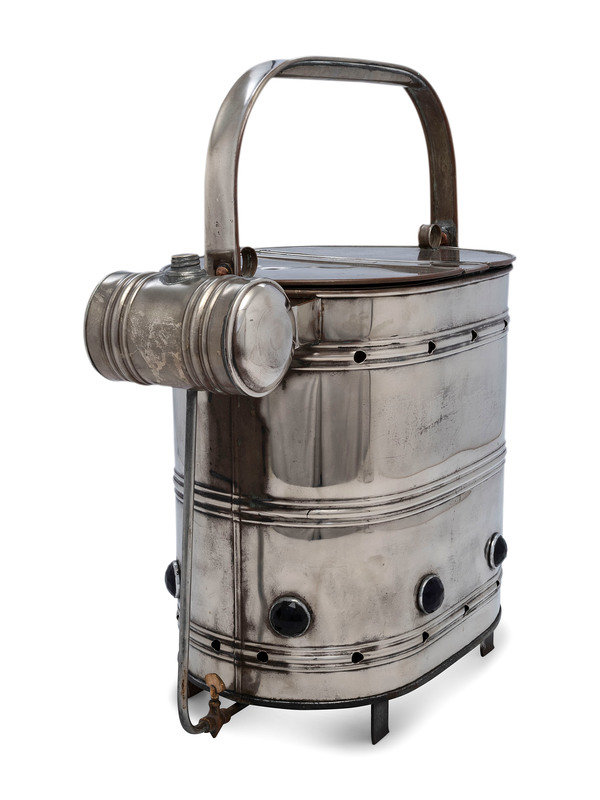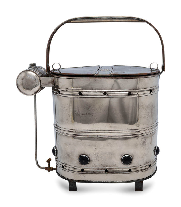 An American Nickel-Plated Copper Hotdog Vendor Steamer with Burner and Jewels