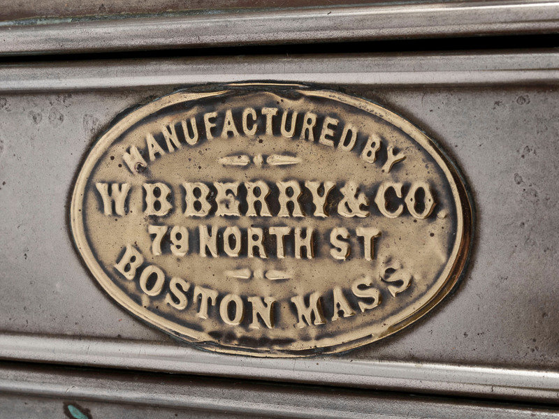 brass plaque on top marked MANUFACTURED BY W. B. BERRY & CO. / 79 NORTH ST. BOSTON, MASS.