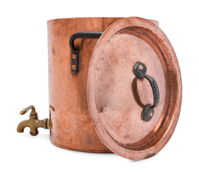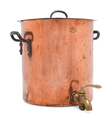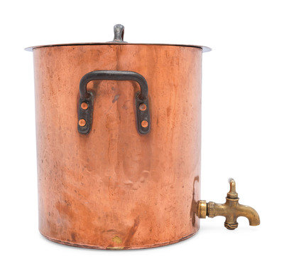 An American Copper Stock Pot with Cover and Faucet