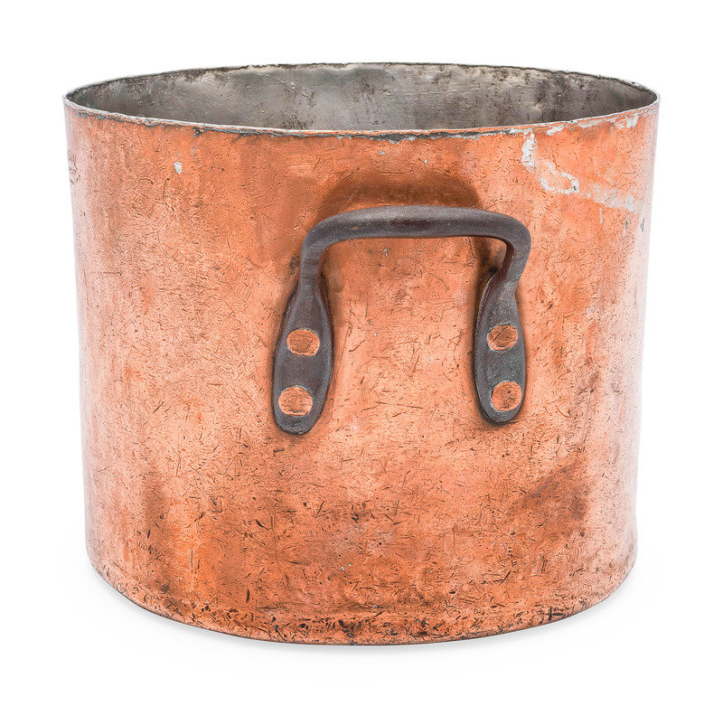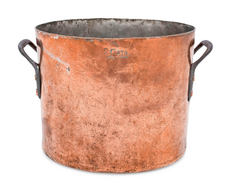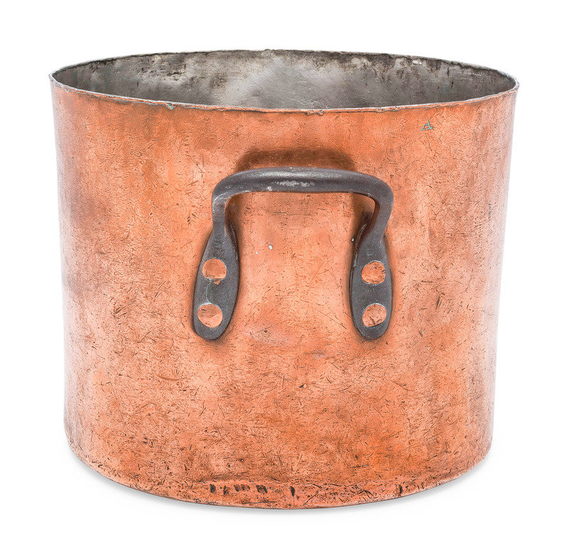 An American Copper Stock Pot with Iron Handles