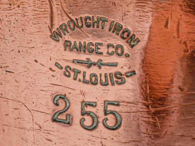 stamped on both pot and iron handle WROUGHT IRON RANGE CO. ST. LOUIS MO.