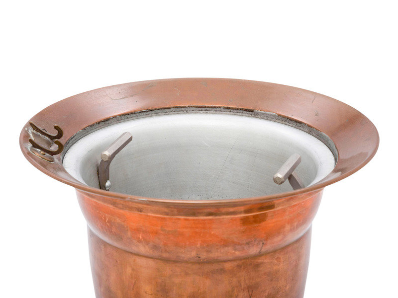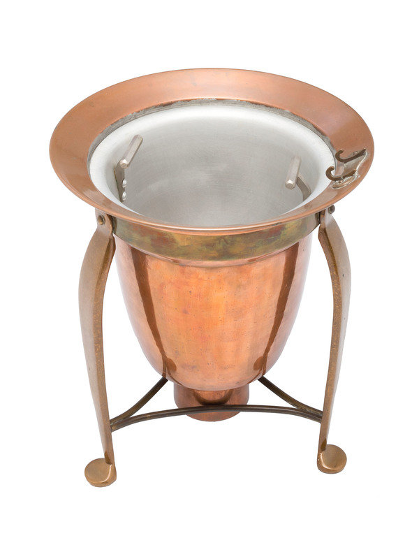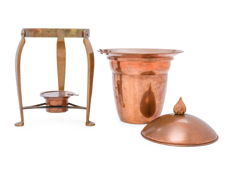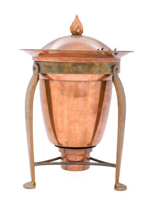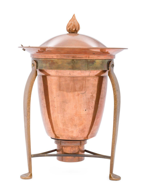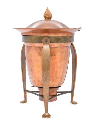 An American Brass, Copper and Aluminum Tureen with Lid and Stand