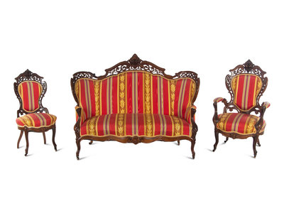 A Renaissance Revival Laminated and Carved Rosewood Three-Piece Parlor Suite