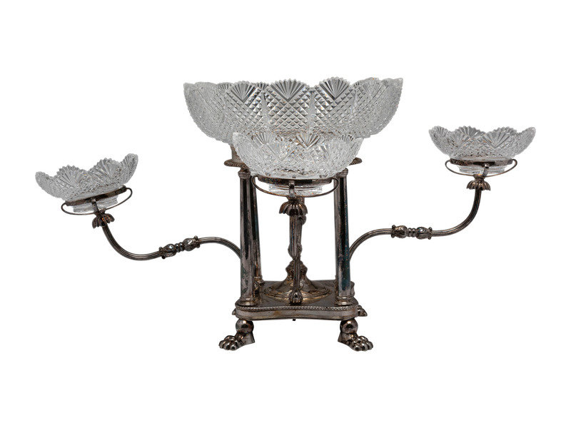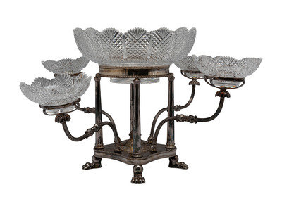 A Sheffield Plate and Cut Glass Epergne