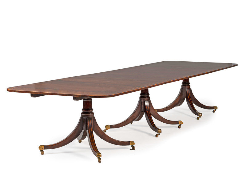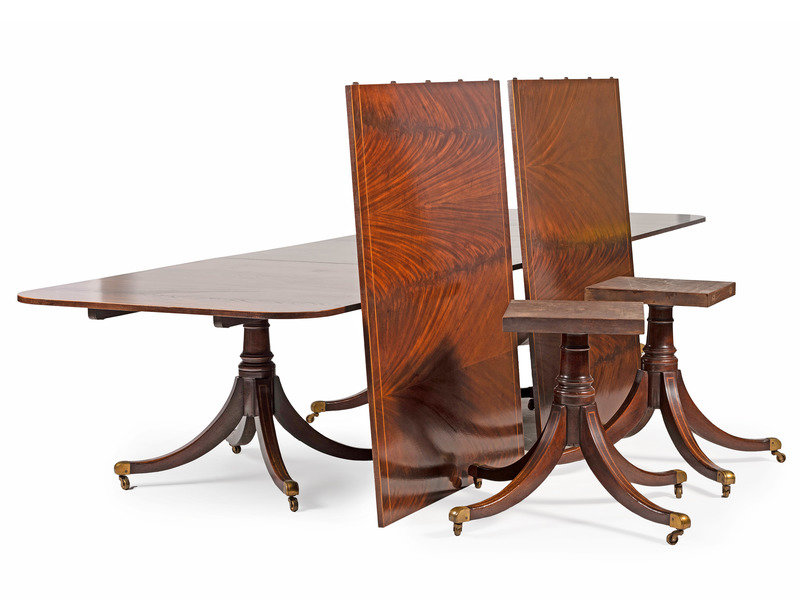A George III Style Five-Pedestal Inlaid Mahogany Dining Room Table