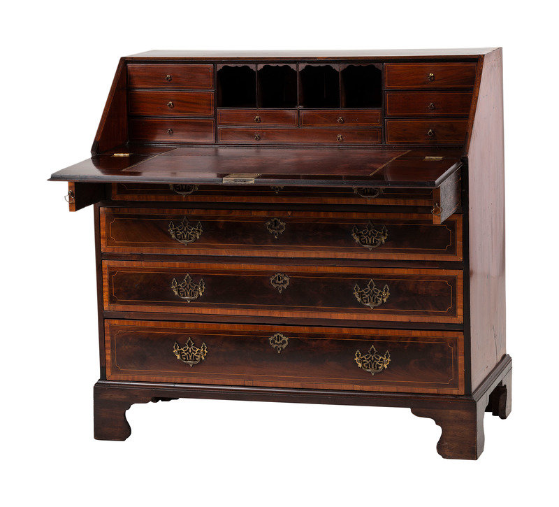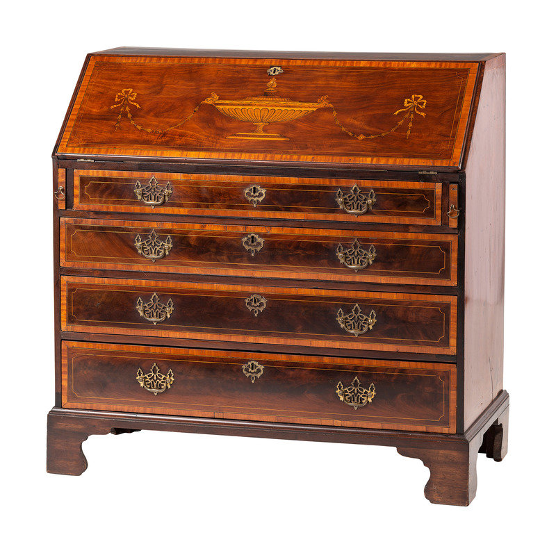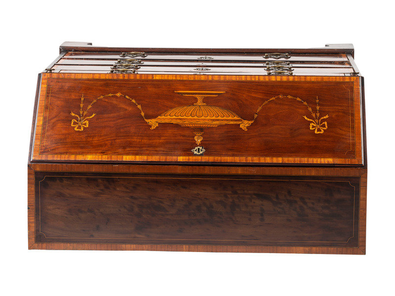 A George III Style Mahogany Urn Inlaid Slant Front Desk