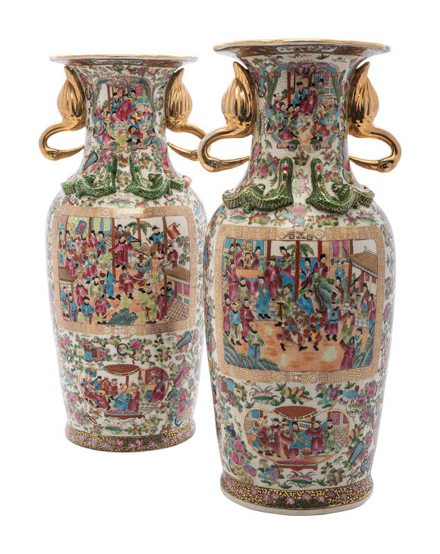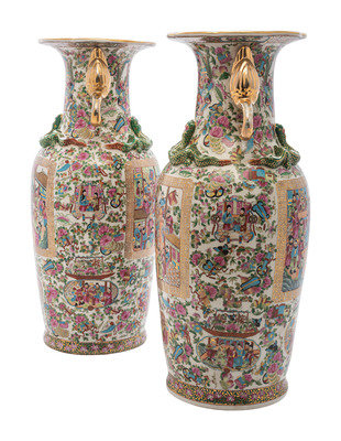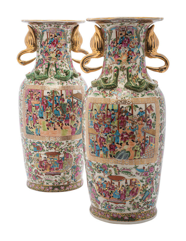 A Pair of Chinese Export Famille Rose Porcelain Vases