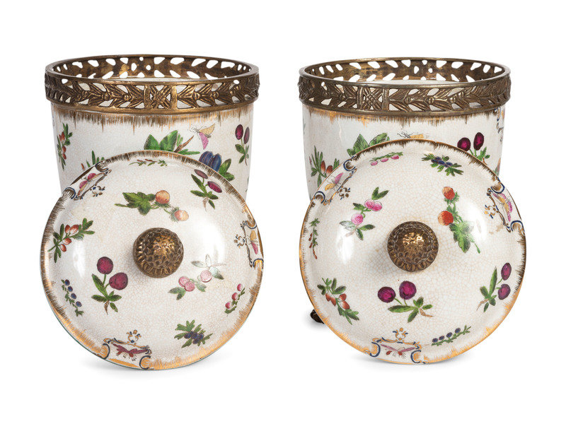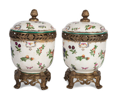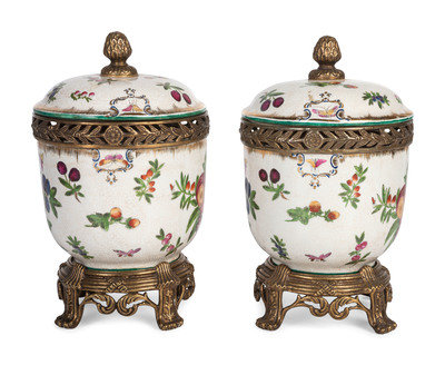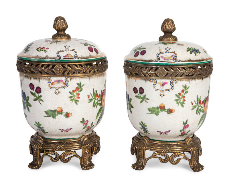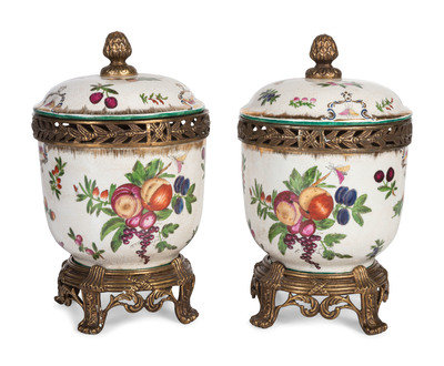 A Pair of United Wilson Gilt Metal Mounted Porcelain Urns