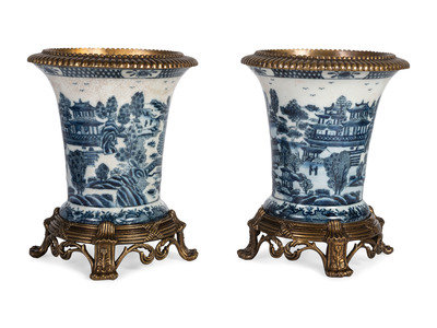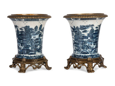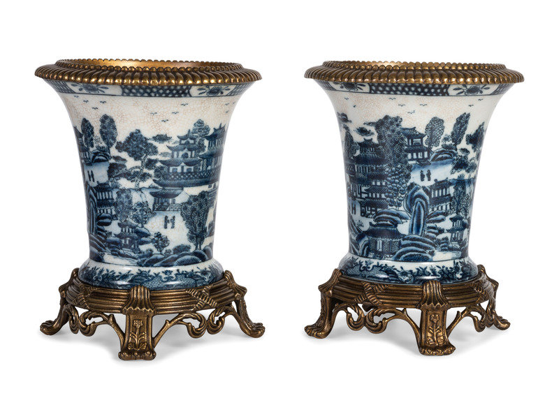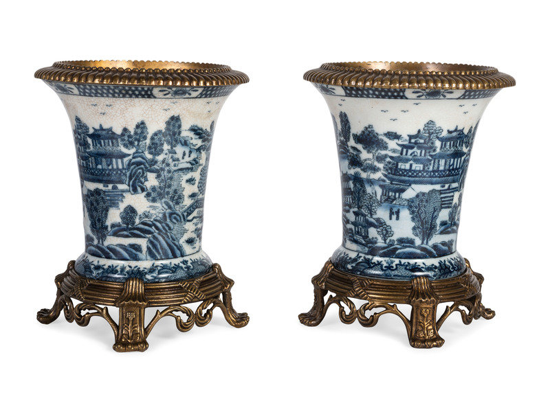 A Pair of United Wilson Gilt Metal Mounted Canton Style Porcelain Urns