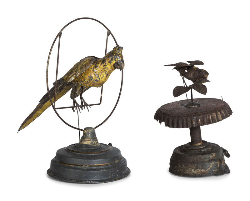 Two German Painted Tin Windup Bird Toys