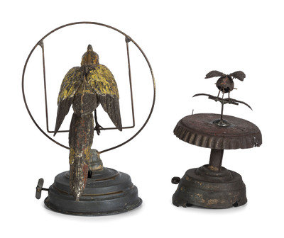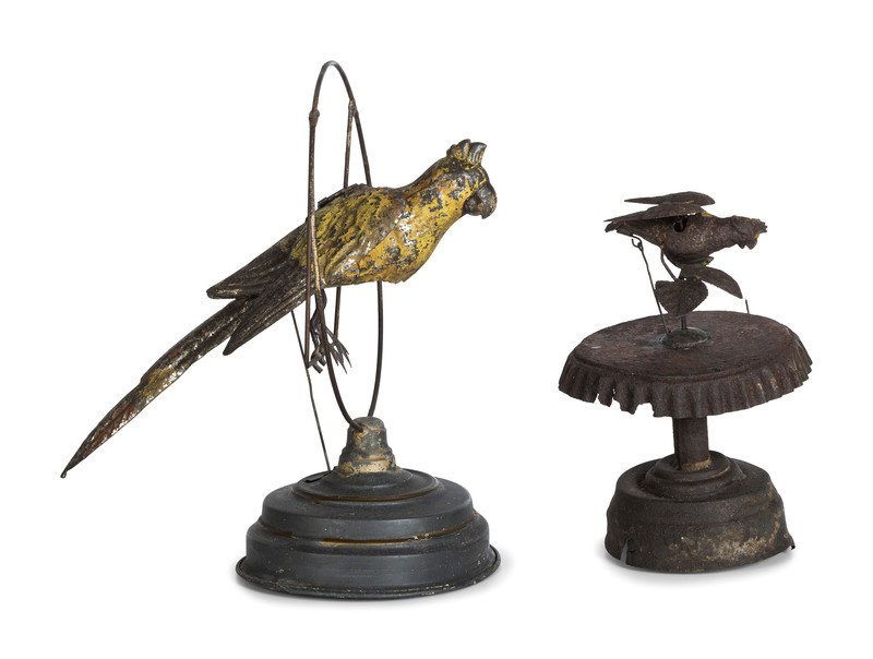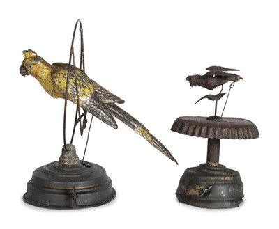 comprising a parrot on a swing attributed to Gunthermann and perched bird on base attributed to Lehmann.