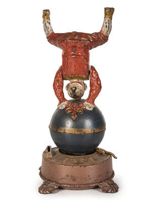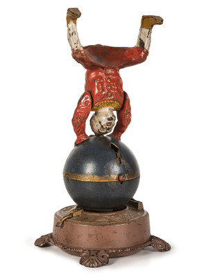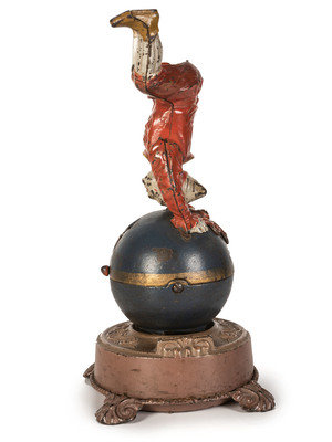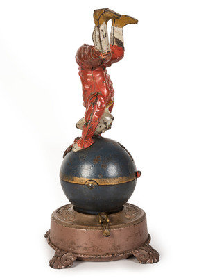 A Spinning Clown on Globe Cast Iron Mechanical Bank