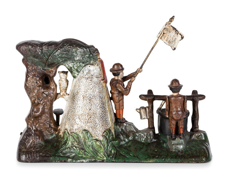A J. and E. Stevens 'Boy Scout Camp' Cast Iron Mechanical Bank