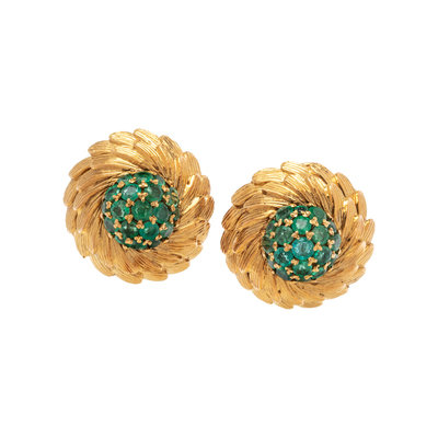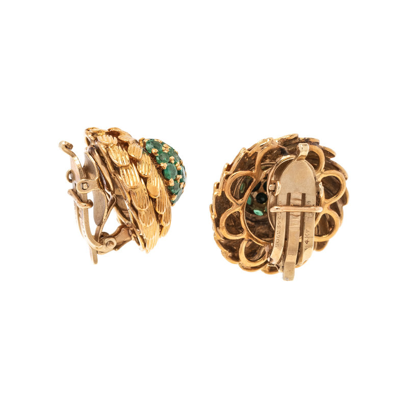 YELLOW GOLD AND EMERALD EARCLIPS