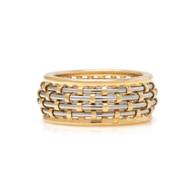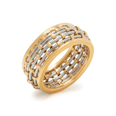 Consisting of a yellow gold ring with steel wire design. Ring size 6.