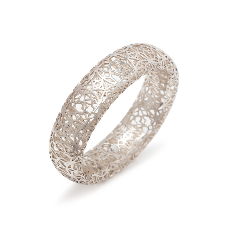 Consisting of an openwork geometric design. 7 1/4 inches inner circumference.