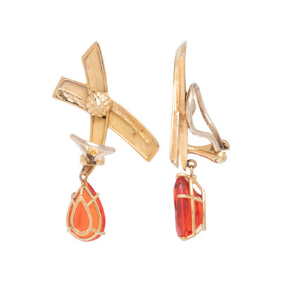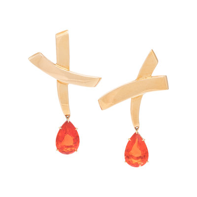 TIFFANY & CO., PALOMA PICASSO, YELLOW GOLD AND FIRE OPAL 'X' EARCLIPS