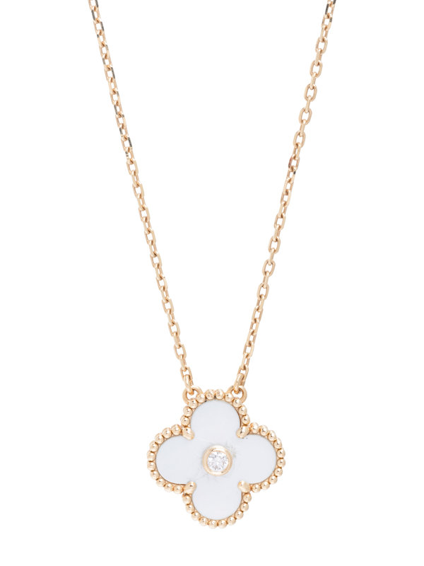 VAN CLEEF & ARPELS, YELLOW GOLD, MOTHER-OF-PEARL AND DIAMOND 'ALHAMBRA' NECKLACE