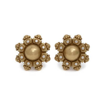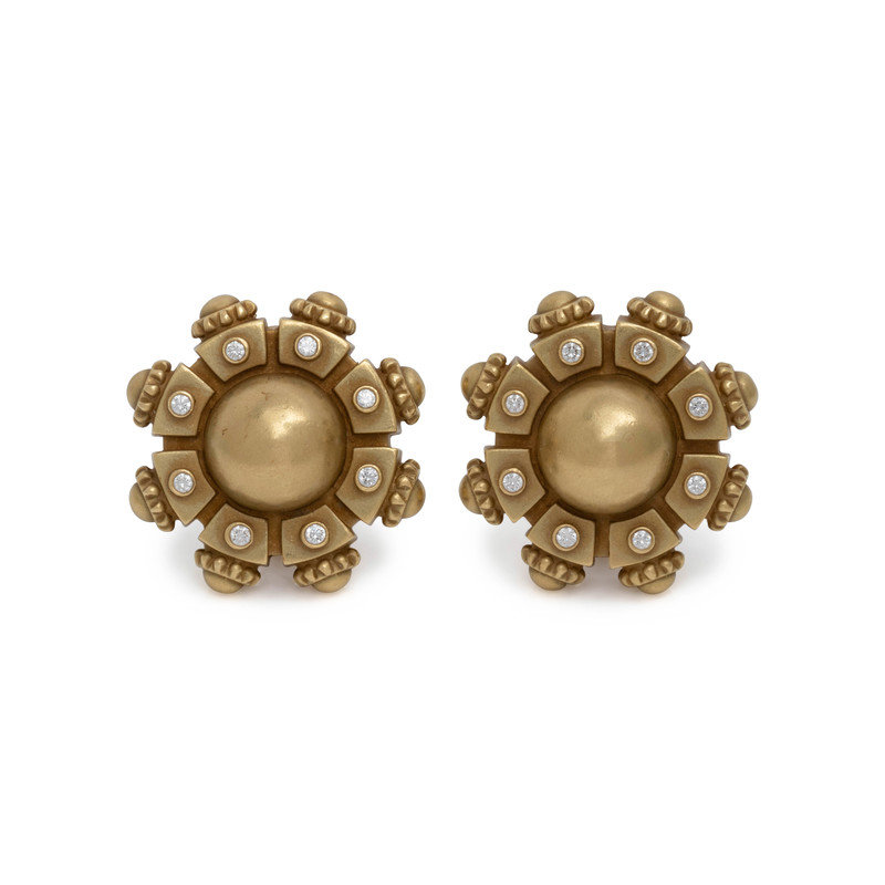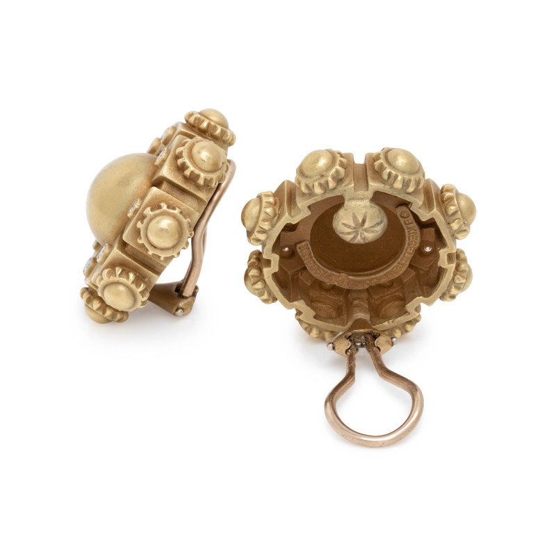 KIELSELSTEIN-CORD, GREEN GOLD AND DIAMOND EARCLIPS