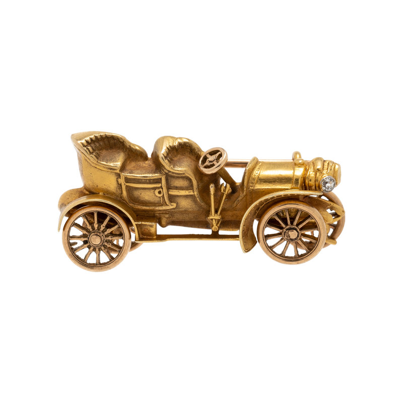 ANTIQUE, YELLOW AND GOLD DIAMOND CAR BROOCH