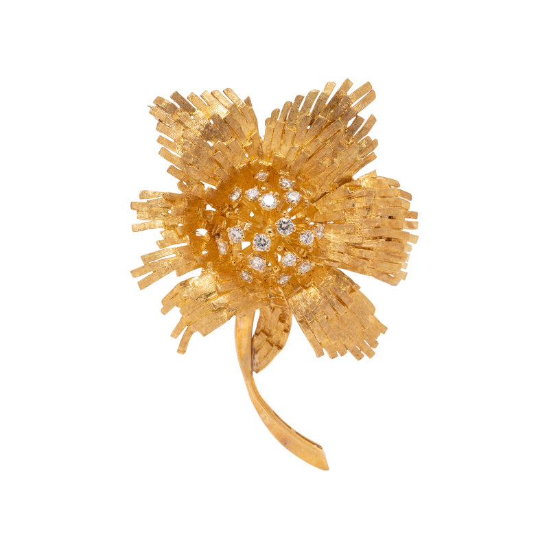 HAMMERMAN BROTHERS, YELLOW GOLD AND DIAMOND FLOWER BROOCH