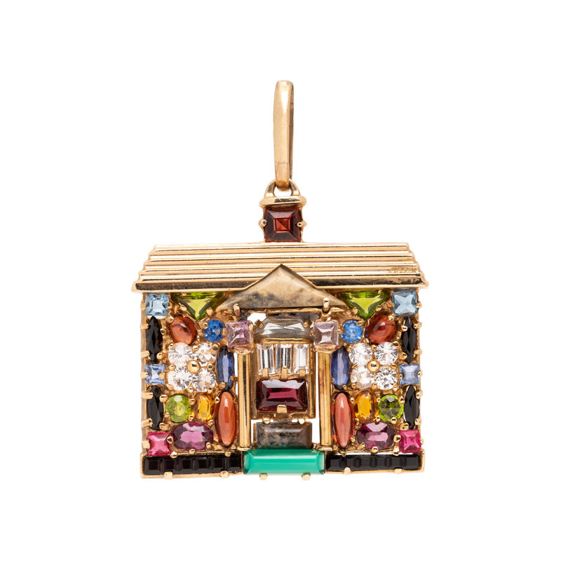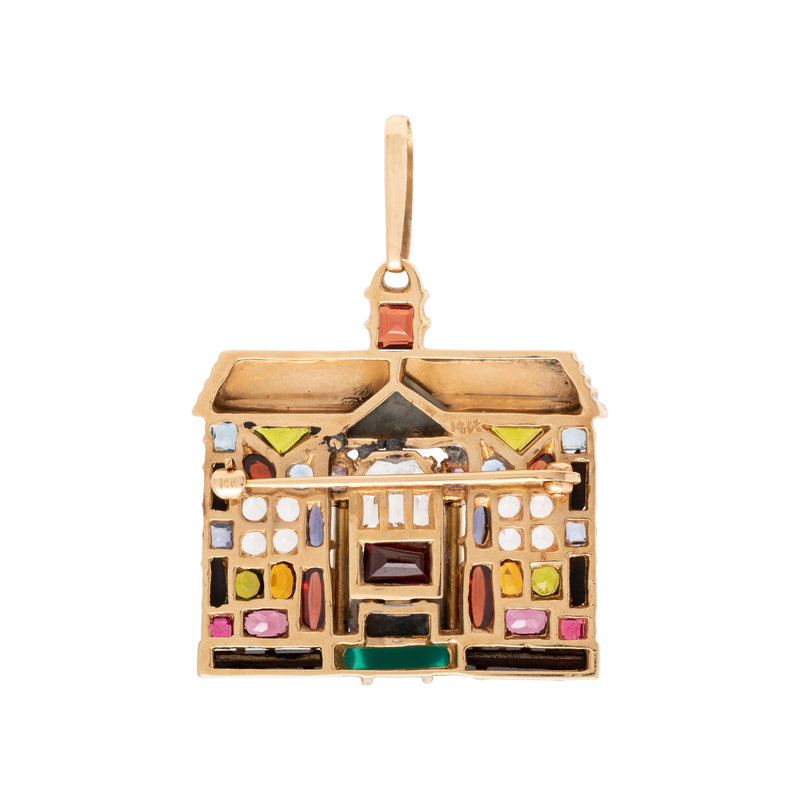 YELLOW GOLD AND MULTIGEM HOUSE PENDANT/BROOCH