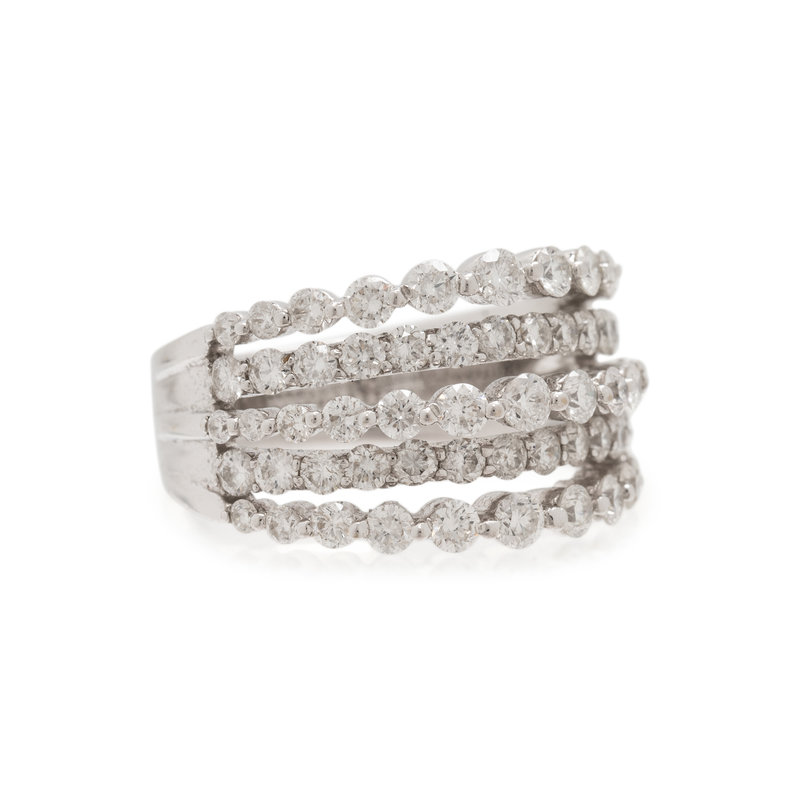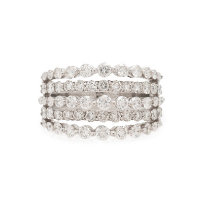 Containing 61 round brilliant cut diamonds weighing approximately 1.30 carats total. Ring size 6 3/4.
