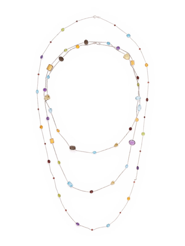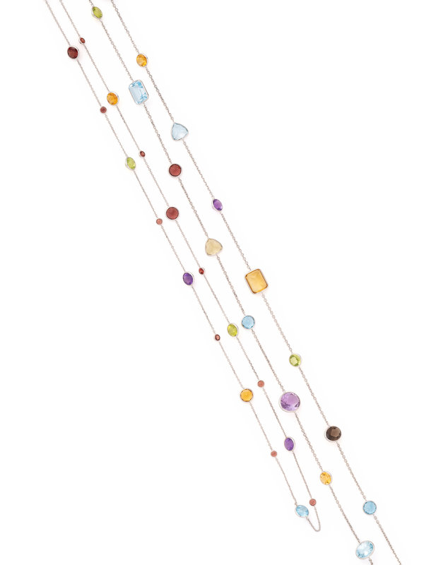 COLLECTION OF WHITE GOLD AND MULTIGEM LONGCHAIN NECKLACES