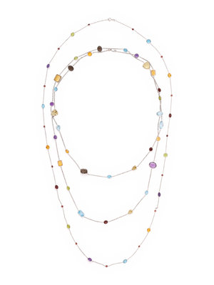 Consisting of two cable link necklaces with gemstone stations of various cuts and colors. 36 and 49 inches long.