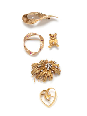COLLECTION OF YELLOW GOLD BROOCHES
