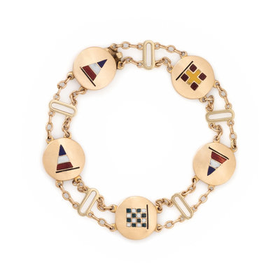 YELLOW GOLD AND ENAMEL NAUTICAL FLAG BRACELET