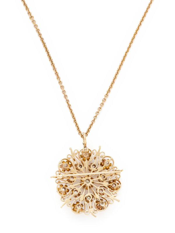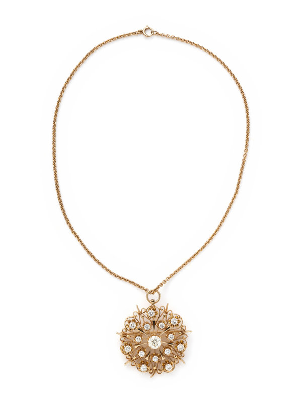 YELLOW GOLD AND DIAMOND PENDANT/BROOCH NECKLACE