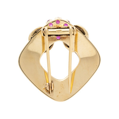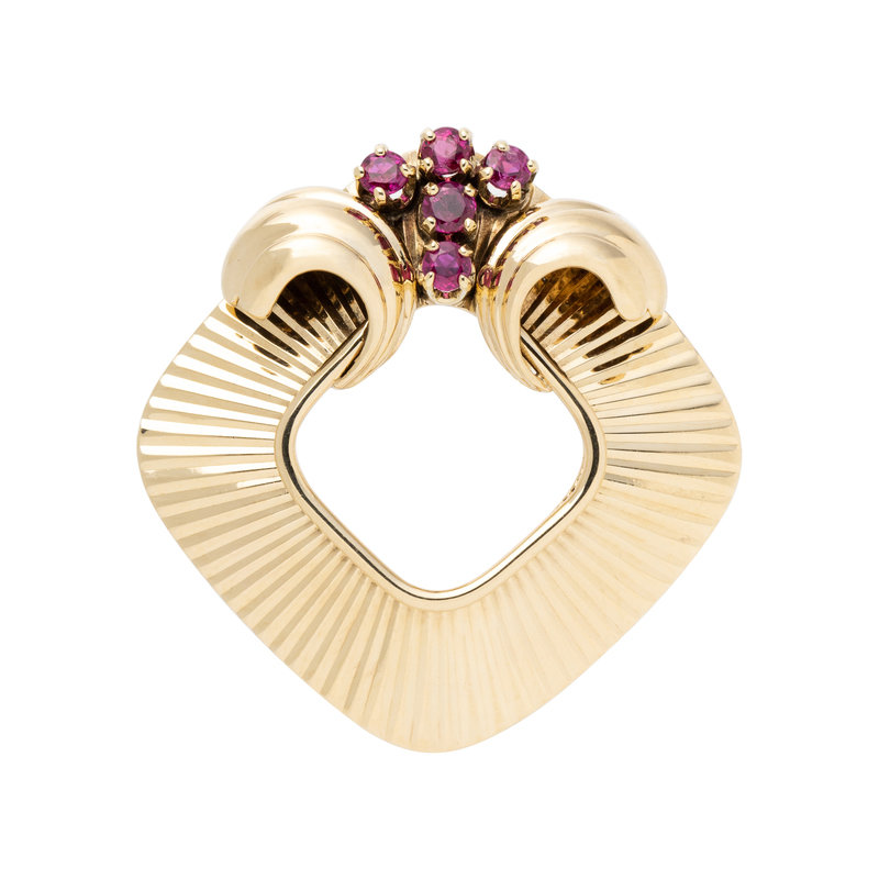 RETRO, YELLOW GOLD AND RUBY BROOCH