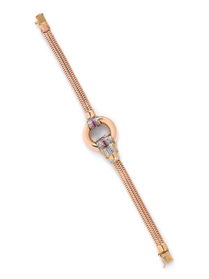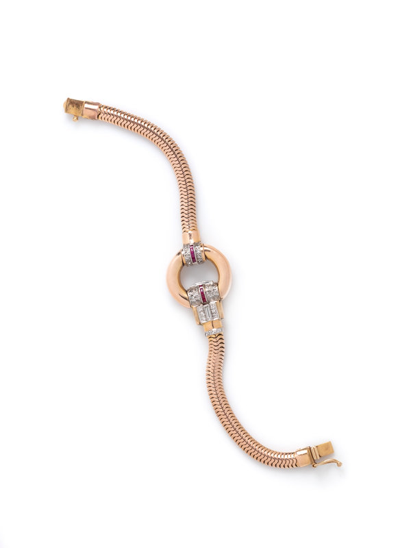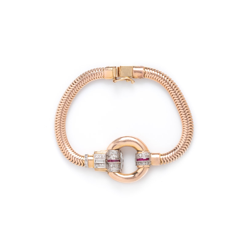 RETRO, ROSE GOLD, DIAMOND AND RUBY BRACELET