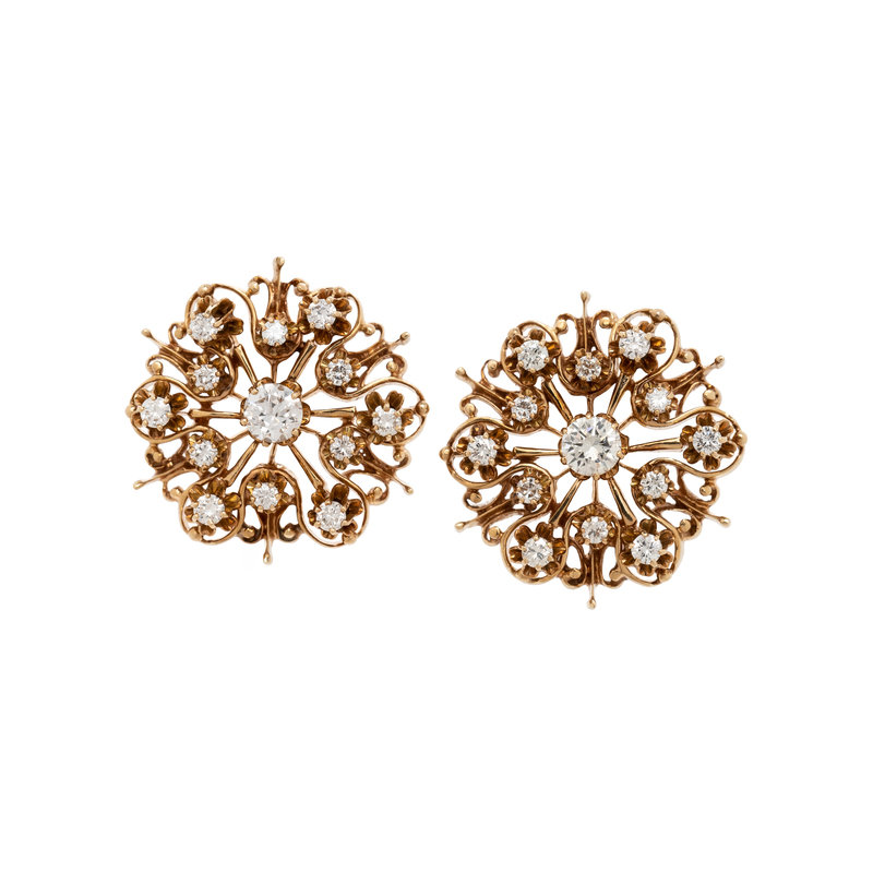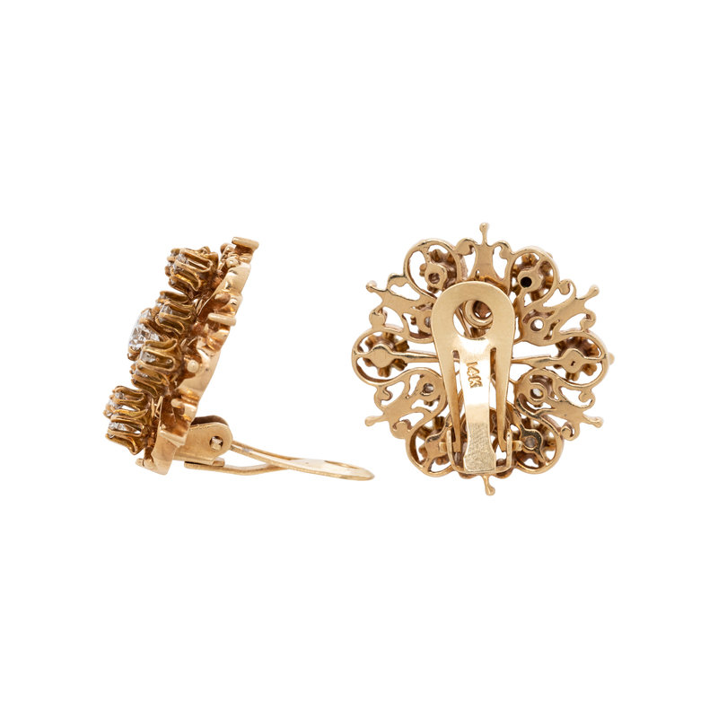 YELLOW GOLD AND DIAMOND EARCLIPS