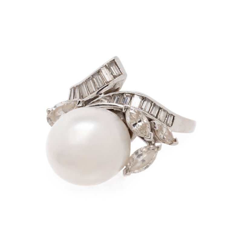 CULTURED SOUTH SEA PEARL AND DIAMOND RING