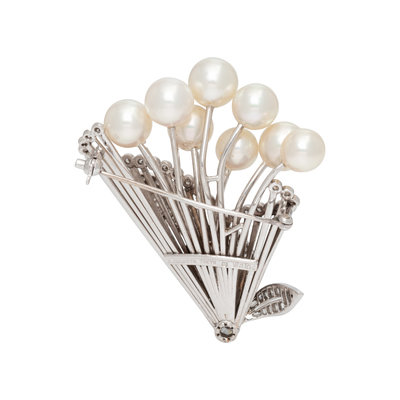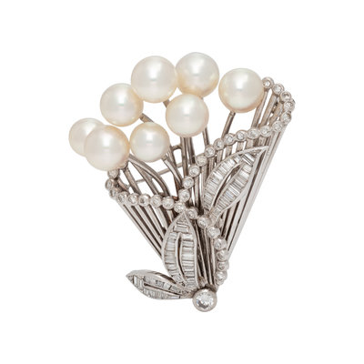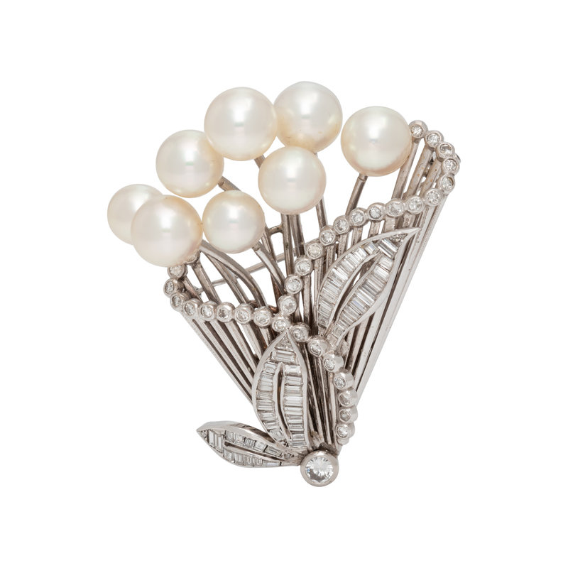 MIKIMOTO, CULTURED PEARL AND DIAMOND BROOCH