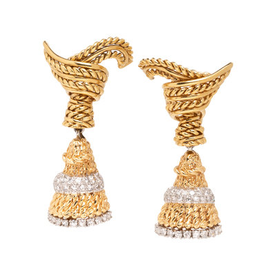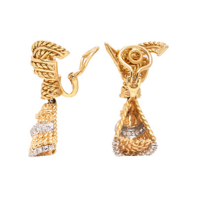 Consisting of a twisted rope tassel design, containing numerous single cut diamonds. 1 1/2 inches long.