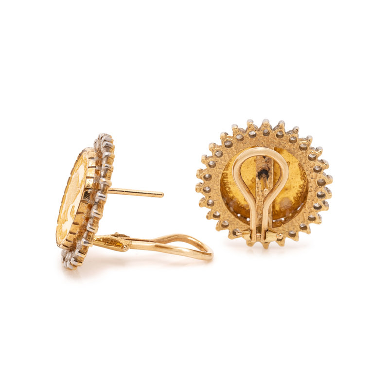YELLOW GOLD, COIN AND DIAMOND EARCLIPS