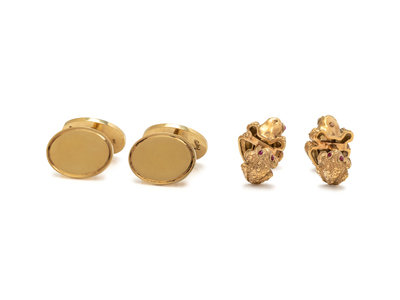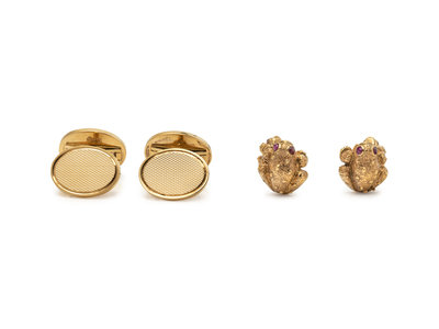 Consisting of a pair of Asprey oval shaped cufflinks, together with a pair of Andrew Clunn frog cufflinks.