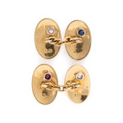 YELLOW GOLD, DIAMOND AND GEMSTONE CUFFLINKS