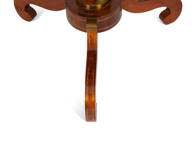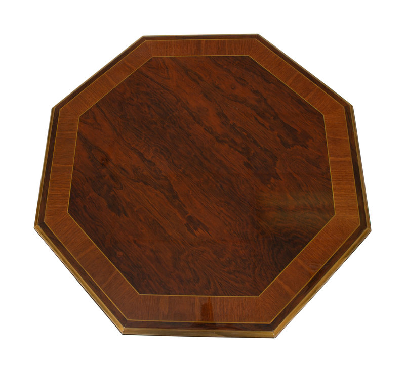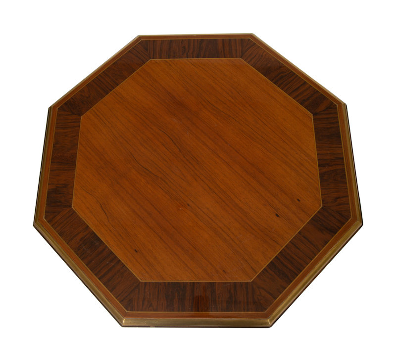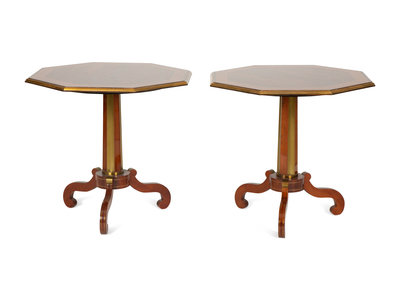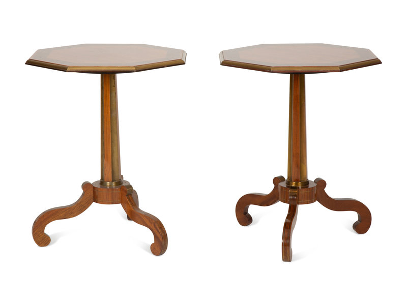 A Pair of Regency Style Hexagonal Top Crossbanded Side Tables with Brass Rims