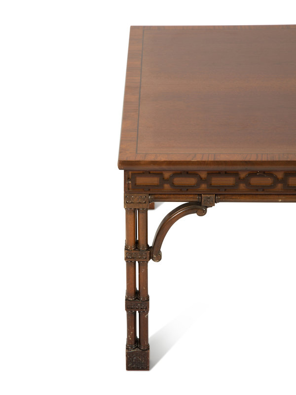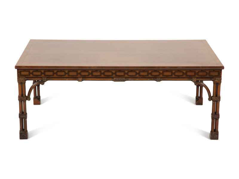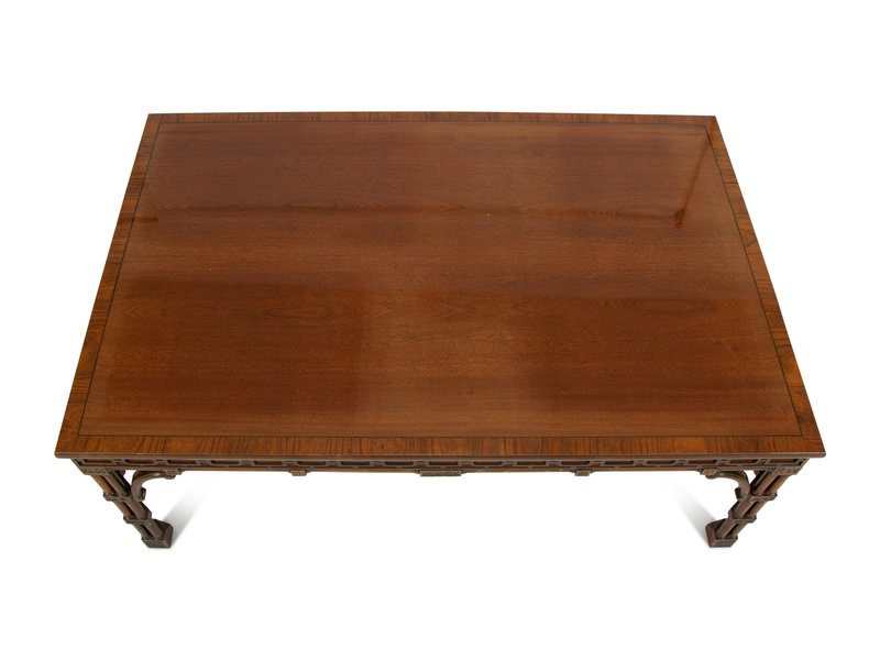 A Regency Style Bamboo Carved Ebony Inlaid Mahogany Coffee Table
