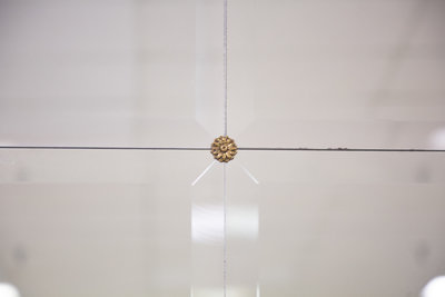 having a segmented mirror plate spaced with gilt metal ornaments.