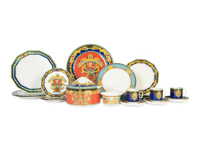 A Versace for Rosenthal Porcelain Le Roi Soleil Pattern Partial Dinner Service