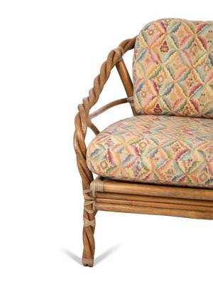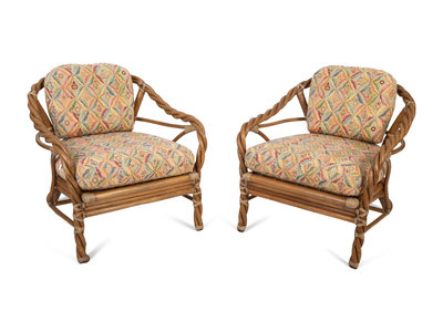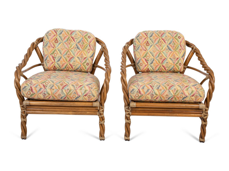 A Pair of McGuire Twisted Rattan and Rawhide Armchairs