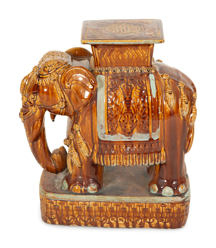 A Glazed Ceramic Elelphant Table