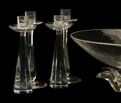 A pair of Kosta Boda candlesticks;