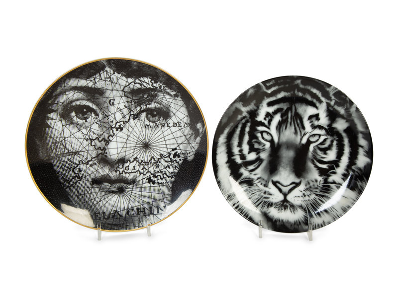 Two Porcelain Art Plates - Robert Longo Tiger Head 2 and Fornasetti Tema e Variazioni Motiv31